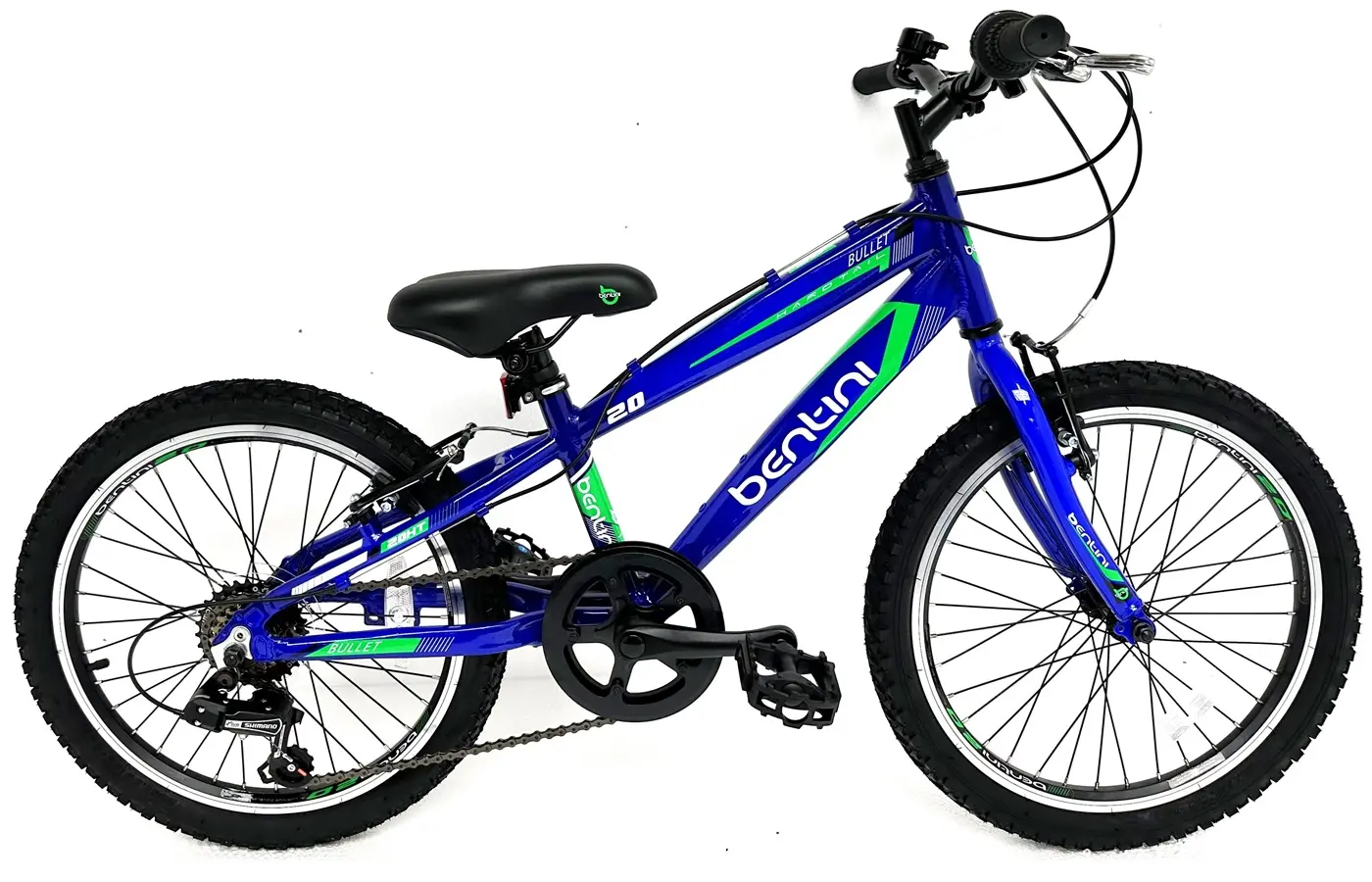 The Bentini range comes with a light Alloy mountain bike style Frame and 6 Speed Shimano Revoshift Gears along with alloy 20″ wheels, a good little junior bike ideal for all terrains and great fun.