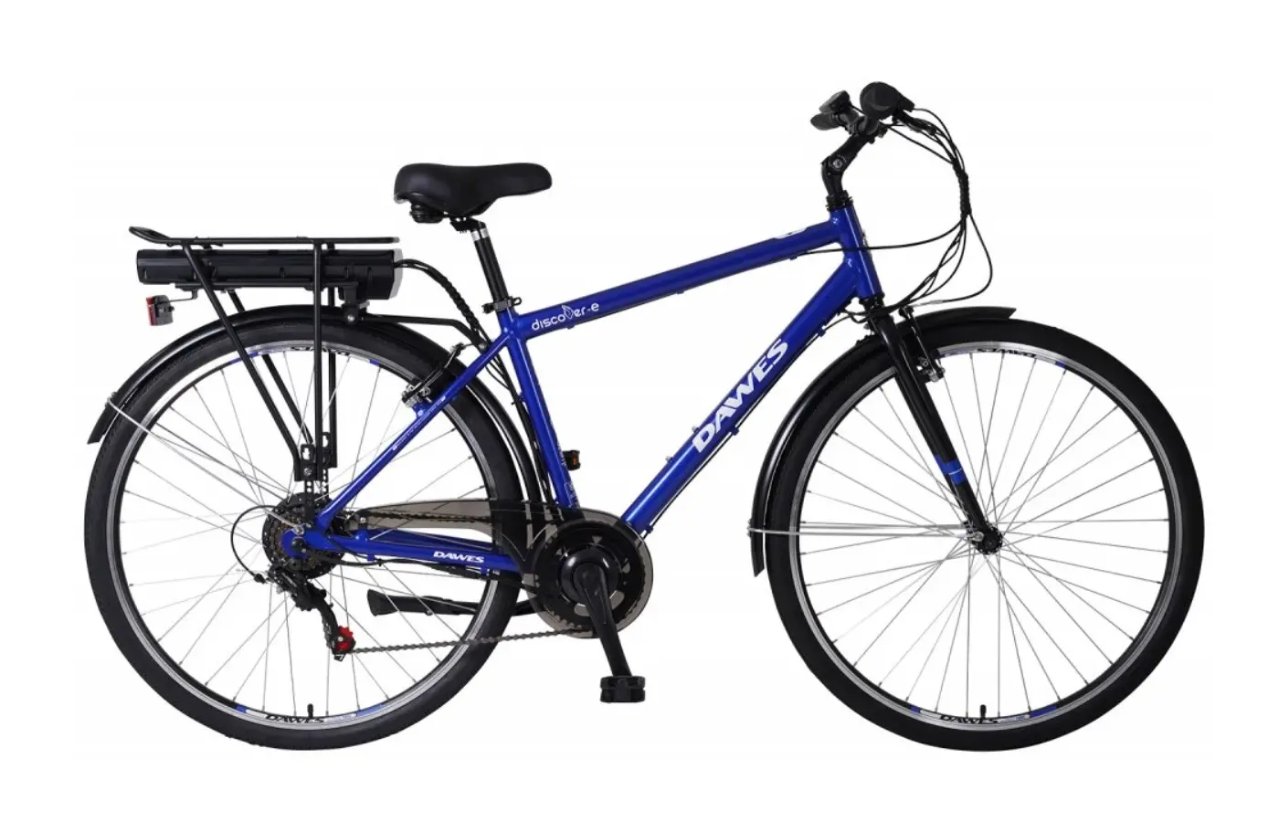 Wanting to discover e-bikes for the first time, or use a new ebike for discovery…our all new Dawes Discover-E fits the bill perfectly. With it’s utilitarian appearance it comes supplied with everything you need for the daily commute or weekend ramble. Front and rear mudguards take care of keeping you clean whilst the rear rack takes care of luggage upto 20kg. Also giving you a helping hand is the smooth yet powerful 250W Bafang rear hub motor, controlled via pedal sensor you can simply set the level of assistance you want from 3 varying levels and as you pedal the motor will activate, it couldn’t be simpler.
