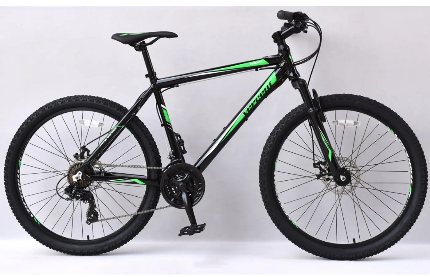 Great Mountain Bike with good quality alloy hydroformed frame and suspension fork. Fitted with Mtb handlebars and stem, Mix that with quality double wall 26″ wheels, 21 speed Shimano Easy Fire gears, mechanical disc brakes both front and rear, Triple Chainset and fast-rolling 26″ tyres.