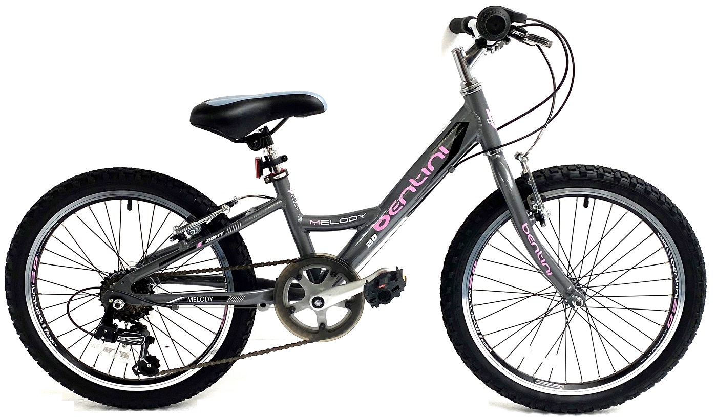 The Bentini range comes with a light Alloy mountain bike style Frame and 6 Speed Shimano Revoshift Gears along with alloy 20″ wheels, a good little junior bike ideal for all terrains and great fun.