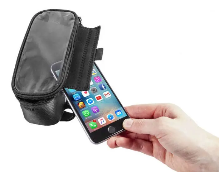 shock-absorbing padding department for mobile devices with transparent window for touch displays rip stop textile guaranteed high tensile strength reinforced bottom velcro attachment water protection